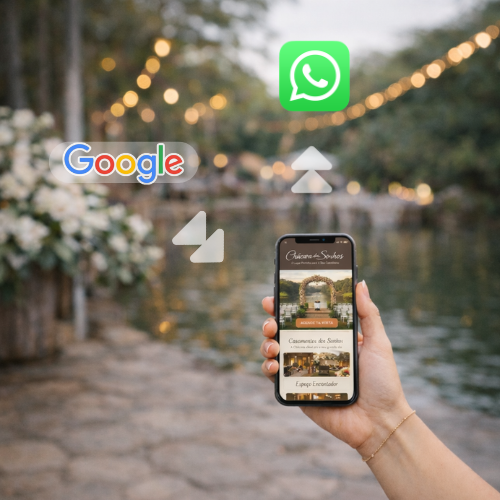 Vamos entender o seu negócio, o tipo de evento que você atende e o perfil do seu público. A partir disso, cuidamos de toda a implementação: textos, imagens, site, Google e WhatsApp.